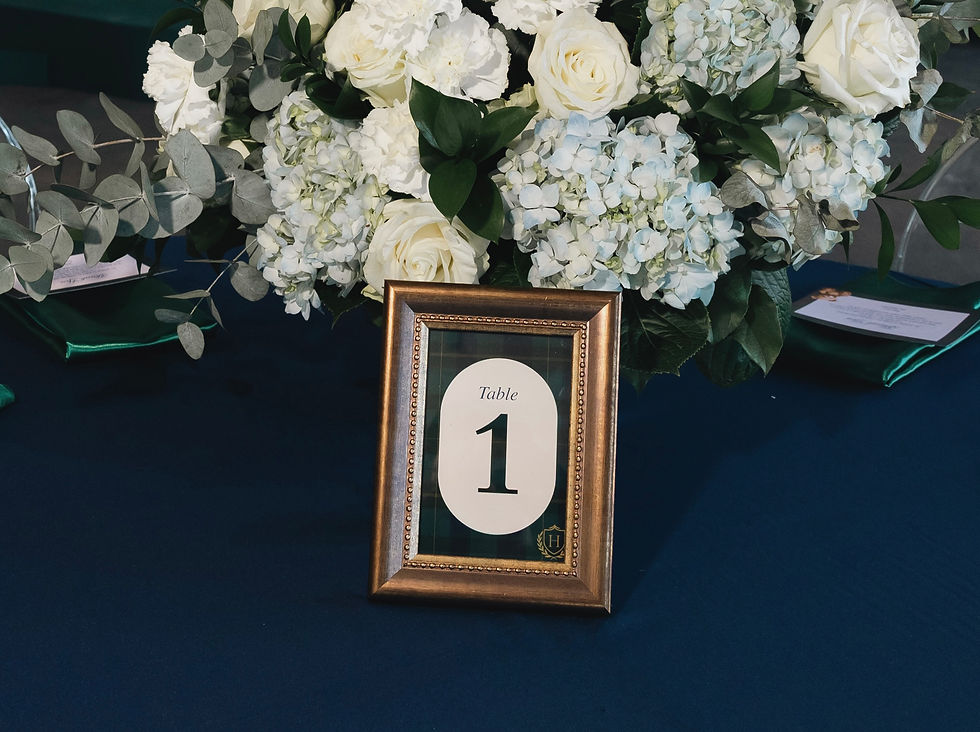 Themed graphics that indicated the table number placed at the centerpiece of each guest's table.