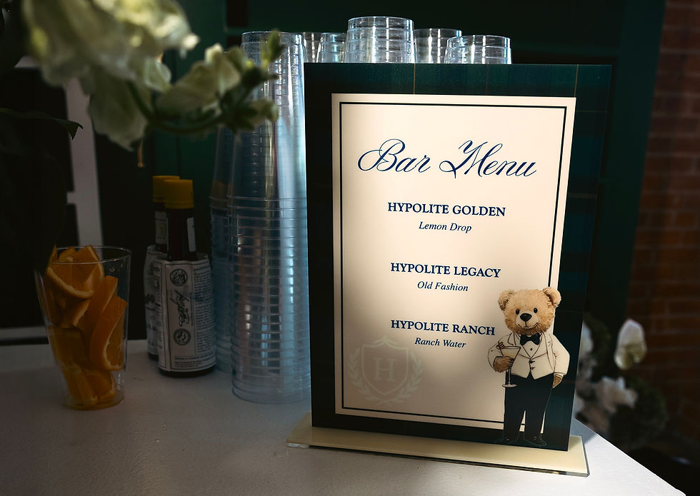 The final result was a beautifully curated baby shower that felt polished, immersive, and thoughtfully branded from start to finish. The consistent use of the crest and monogram tied every element together, while the life-size teddy bear cutouts and vinyl bar installation added memorable, photo worthy moments. Bernard Creative Co. was able to execute the event with confidence, knowing every visual detail supported the overall vision, and guests experienced a seamless, high-end celebration that balanced sophistication with warmth.